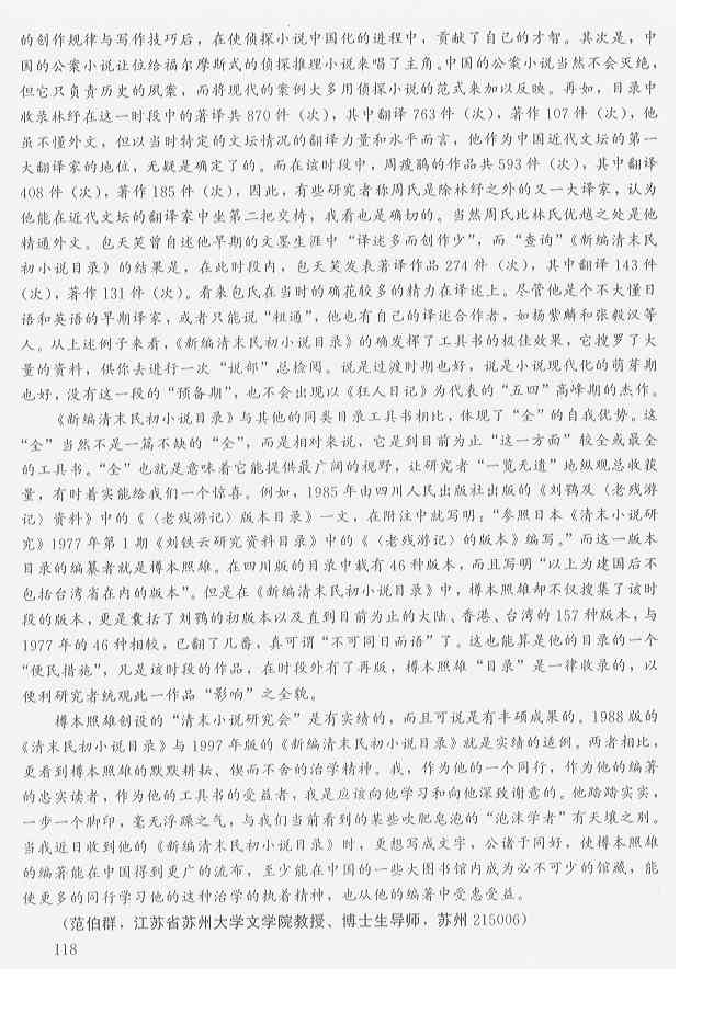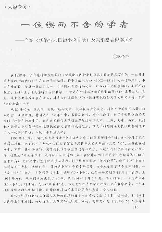 范伯群「一位〓而不捨的学者――介紹《新編清末民初小説目録》及其編纂者樽本照雄」