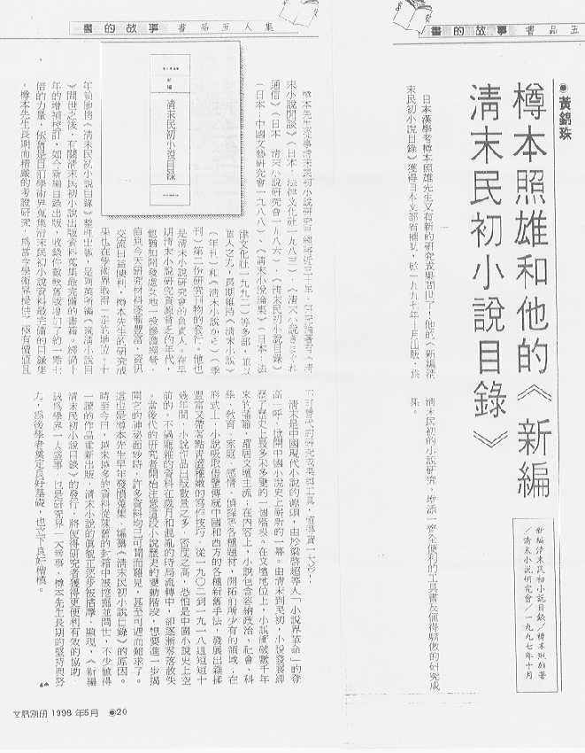 黄錦珠「樽本照雄和他的《新編清末民初小説目録》」