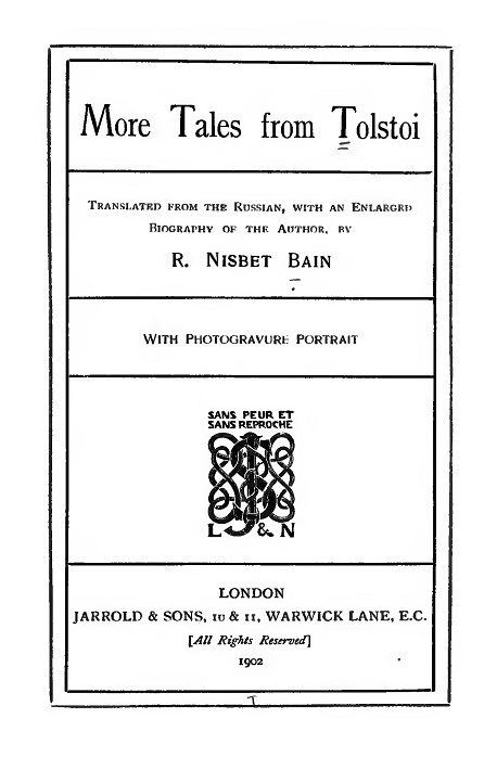 @‰p–ó‚Ì—áFLEO TOLSTOI ìAR.(ROBERT) NISBET BAIN ‰p–ógNEGLECT A FIRE, AND 'TWILL OVERMASTER THEE!higTALES FROM TOLSTOIhLONDON: JARROLD & SONS, 1901jB