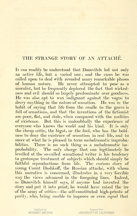 extending her left arm, which was provided with an artificial hand. The conversation Maxime had just heard had left no room for doubt, and, besides, he recollected that he had never seen Madame Yalta ungloved. She had fenced in gloves, she had driven in gloves, and when she had received him reclining on a divan or in bed her hands had not been visible. He understood all now ; there was no more mystery.