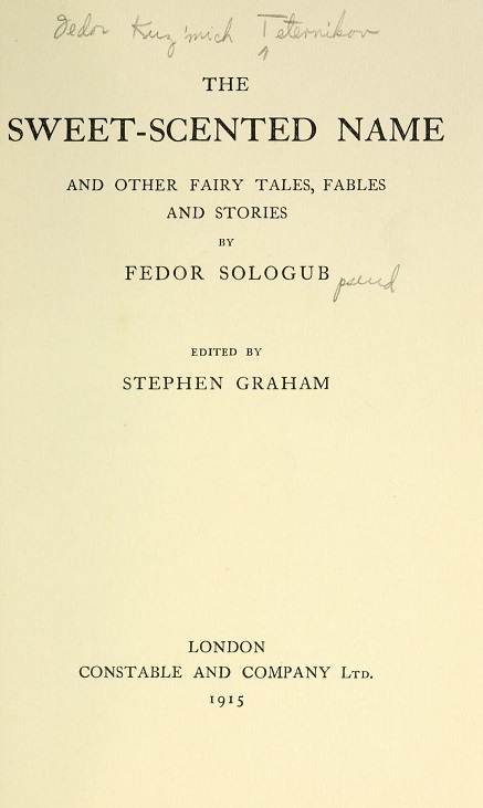 @i‰âjF. SOLOGUB ’˜A“AU‘ö–óu你¥’NvB’F–ÚŽŸ‚Íu?v‚ ‚èBFEDOR SOLOGUB ìASTEPHEN GRAHAM ‰p–ógWHO ART THOU ?higTHE SWEET-SCENTED NAME, AND OTHER FAIRY TALES, FABLES AND STORIEShLONDON: CONSTABLE AND COMPANY LTD. 1915B‚Ü‚½ NEW YORK: G.P. PUTNAM'S SONS, 1915j