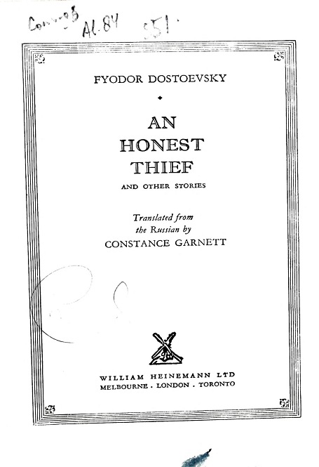 @“mŽz‘Þ‰v•vŽzŠîŒ´’˜A’‘å”ß–óu‘¯vFYODOR DOSTOEVSKY ìACONSTANCE GARNETT ‰p–ógAN HONEST THIEFhigAN HONEST THIEF AND OTHER STORIEShMELBOURNE, LONDON, TORONTO: WILLIAM HEINEMANN LTD, 1919j