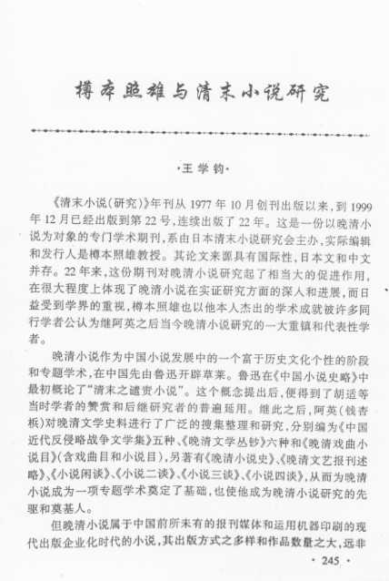王学鈞「樽本照雄与清末小説研究」(『明清小説研究』2000年第3期)